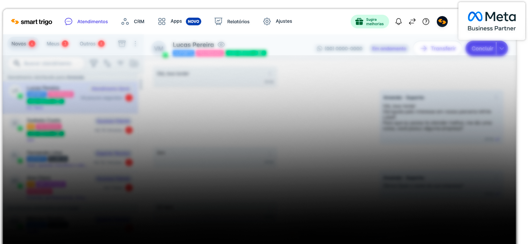 A SMART TRIGO conecta atendimento humano, IA conversacional e CRM em um único fluxo comercial.